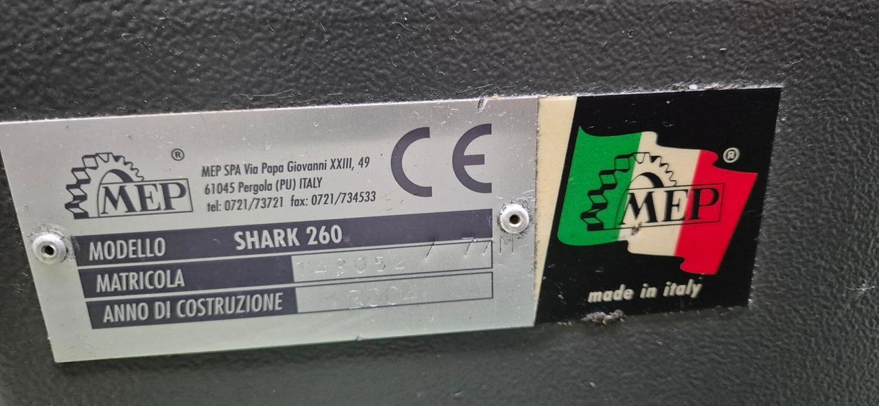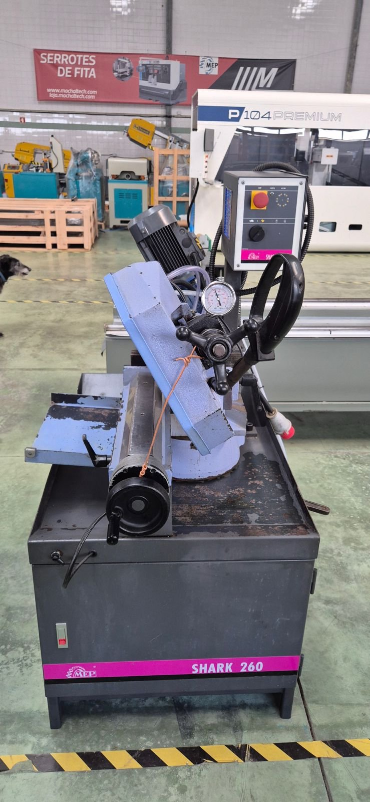A MEP Shark 260 é uma máquina elétrica, equipada geralmente com um motor trifásico de 400V com duas velocidades (36 e 72 RPM), concebida para o corte preciso e eficiente de materiais metálicos.